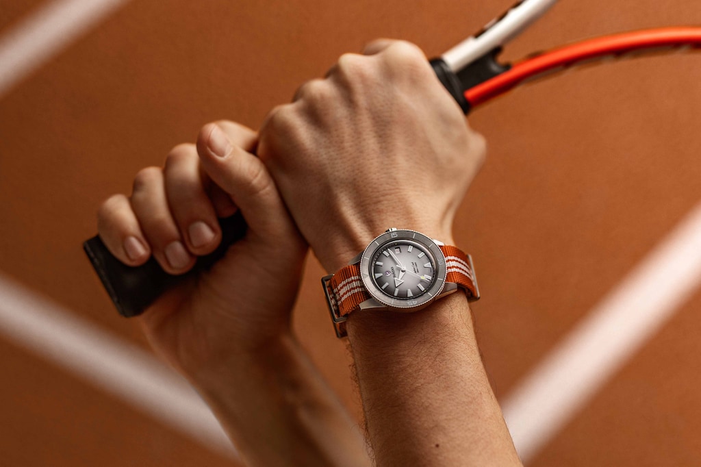 為慶祝網球40週年,這款Captain Cook庫克船長限量版腕錶融合了精準、風格與運動精神。限量發行1985只,腕錶配備39毫米不鏽鋼錶殼、電漿陶瓷錶圈,搭配由釕色漸變至白色的錶盤,點綴醒目的白色Super-LumiNova®夜光標記。秒針尖端與錶盤上的四個圓點採用深黃色Super-LumiNova®,呼應新網球的鮮明色彩。圓點位於15、30、40與12點位置,象徵網球經典計分方式。腕錶配有不鏽鋼錶帶及三條織物錶帶(綠、藍、橙三色),適配所有比賽場地。憑藉EasyClip輕鬆快拆系統,錶帶更換僅需幾秒。