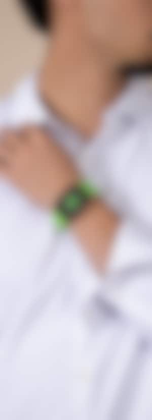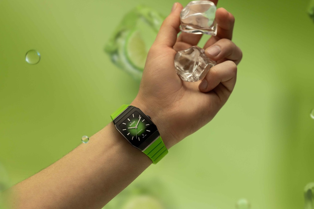 自1983年首次亮相以來,Rado瑞士雷達表Anatom拱形系列一直是突破性設計與卓越舒適的代名詞。其標誌性特徵在於圓柱形金屬鍍層藍寶石水晶錶鏡——兩側對稱斜面切割,倒角線條無縫流瀉至拋光高科技陶瓷錶殼,繼而延伸至拋光精鋼錶耳,最終與萊姆綠錐形橡膠錶帶渾然交融。此整體式設計由拉絲精鋼三折式錶扣穩固銜接,搭配拋光高科技陶瓷扣面。 在這塊獨特的水晶之下,是黑色至萊姆綠漸變錶盤。覆有白色Super-LumiNova®夜光塗層的銠色指針和時標,與錶盤的深邃色彩形成精緻的對比。錶盤12點鐘位置上飾有經典的可擺動錨型標誌,與6點鐘位置低調的日期窗口相得益彰。 透過藍寶石水晶底蓋,可盡情欣賞鑲有21顆寶石的R766型自動機械機芯在錶殼內律動的美感。機芯經五個方位精密調節,搭載Nivachron™游絲,提供高精準度和強勁的72小時動力儲存,彰顯Rado瑞士雷達錶對完美的承諾。