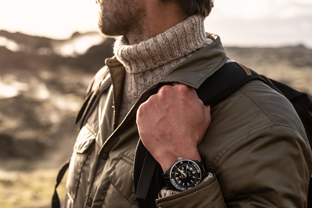 Captain Cook庫克船長高科技陶瓷潛水腕錶的防水性能經ISO 6425認證,深達300米。指針與刻度覆有Super-LumiNova®夜光塗層,與黑色漆面拋光錶盤形成鮮明對比,確保佩戴者能夠輕鬆讀取時間。整體式構造錶殼直徑43毫米,由啞光黑色高科技陶瓷製成,旋轉錶圈則採用拋光硬化精鋼材質。腕錶搭載Rado R763自動機芯,較標準精準度測試要求超出整整五分,動力儲存長達80小時。這一款式搭配拋光黑色高科技陶瓷錶鏈。無論您的探索領域為何,您的Captain Cook庫克船長高科技陶瓷潛水腕錶都將證明它是個可靠而堅韌,值得長年同行的夥伴。