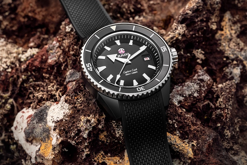 Captain Cook庫克船長高科技陶瓷潛水腕錶的防水性能經ISO 6425認證,深達300米。指針與刻度覆有Super-LumiNova®夜光塗層,與黑色漆面拋光錶盤形成鮮明對比,確保佩戴者能夠輕鬆讀取時間。整體式構造錶殼直徑43毫米,由啞光黑色高科技陶瓷製成,旋轉錶圈則採用拋光硬化精鋼材質。腕錶搭載Rado R763自動機芯,較標準精準度測試要求超出整整五分,動力儲存長達80小時。這一款式搭配啞光黑色橡膠錶帶。無論您的探索領域為何,您的Captain Cook庫克船長高科技陶瓷潛水腕錶都將證明它是個可靠而堅韌,值得長年同行的夥伴。