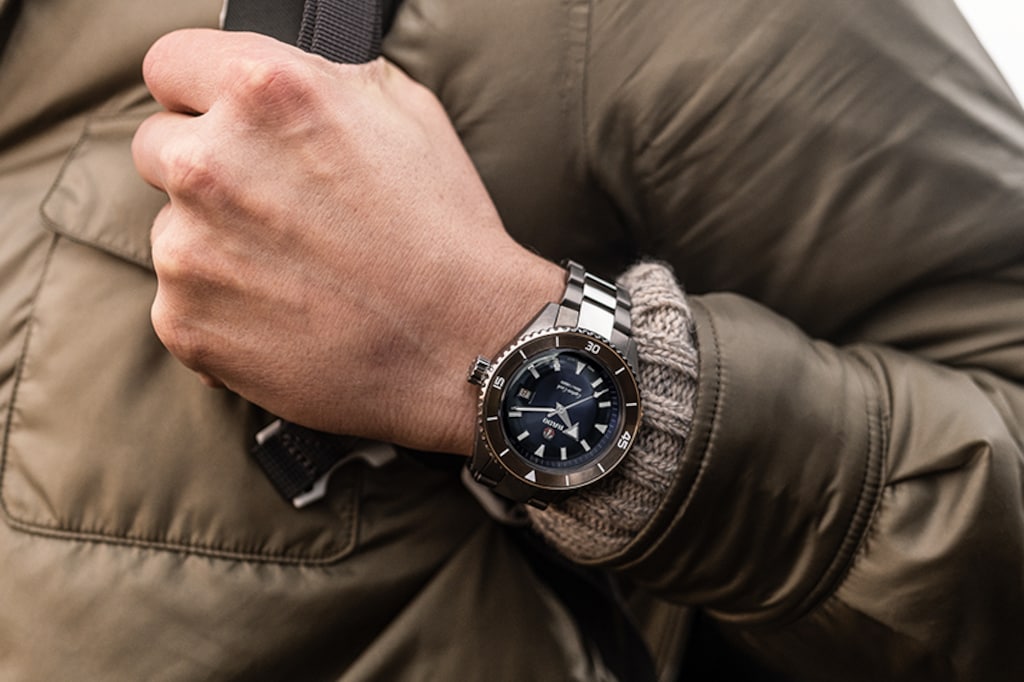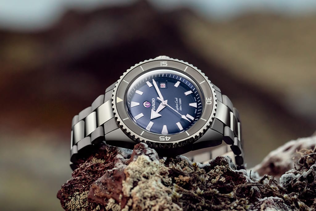 Captain Cook庫克船長高科技陶瓷潛水腕錶的防水性能經ISO 6425認證,深達300米。指針與刻度覆有Super-LumiNova®夜光塗層,與藍色太陽紋飾漆面拋光錶盤形成鮮明對比,確保佩戴者能夠輕鬆讀取時間。整體式構造錶殼直徑43毫米,由啞光等離子高科技陶瓷製成,旋轉錶圈則採用拋光硬化精鋼材質。腕錶搭載Rado R763自動機芯,較標準精準度測試要求超出整整五分,動力儲存長達80小時。這一款式搭配拋光等離子高科技陶瓷錶鏈。無論您的探索領域為何,您的Captain Cook庫克船長高科技陶瓷潛水腕錶都將證明它是個可靠而堅韌,值得長年同行的夥伴。