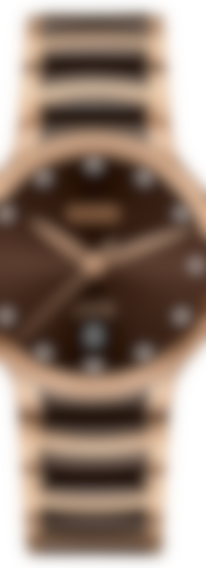 經典Centrix晶萃系列鑲鑽石英腕錶不僅在技術上進行調整,亦在美學上予以重新設計。改款後的錶款,擁有一個圓形的無邊框藍寶石水晶玻璃錶鏡,以及一個與弧形水晶邊緣渾然天成的弧形錶殼。全新改款的錶耳和搭配棕色高科技陶瓷中央鏈節的拋光玫瑰金色PVD塗層精鋼錶鏈,令這款經典時計的整體外觀更臻完美。棕色太陽紋錶盤鑲嵌著12顆鑽石,印有「jubilé」標誌,與玫瑰金色指針完美搭配。搭載PreciDrive和HeavyDrive技術的R073型石英機芯,讓腕錶具有更加優異的精準度和抗震性。腕錶防水深度達50公尺。