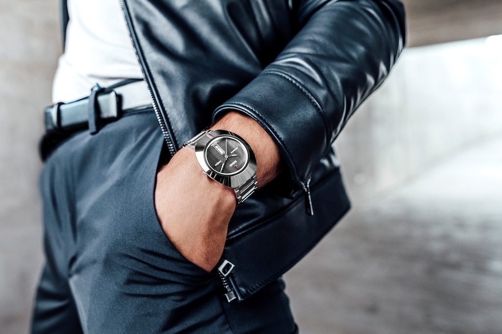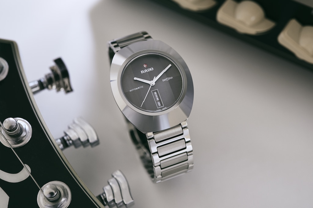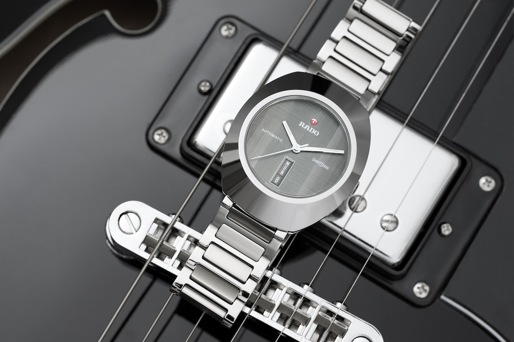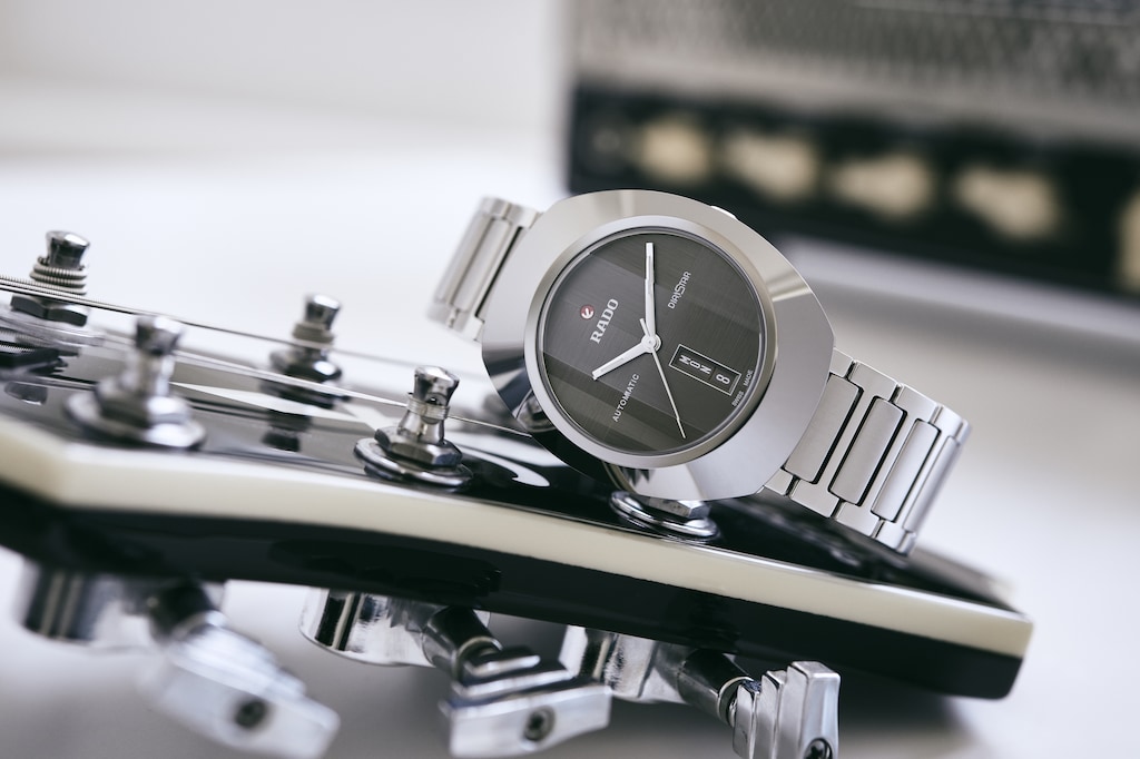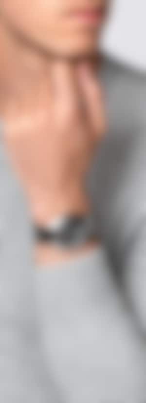 與眾不同的DiaStar鑽星系列創始型腕錶,直徑38毫米,防水深度可達100公尺。這枚美麗的腕錶以平行條紋切面的藍寶石水晶玻璃錶鏡為底,採用超亮碳化鈦金屬陶瓷紋飾,搭配拋光處理過的角度和細節點綴,鑲嵌在互相搭配的單色精鋼錶殼上。腕錶配備深灰色拉絲錶盤,可雙向旋轉、具有銠色Super-LumiNova®夜光塗層指針,以及與錶盤顏色一致的日期顯示。腕錶內部的Rado瑞士雷達表R764型自動機械機芯,搭載防磁Nivachron™游絲,可提供80小時動力儲存。配有經拋光和拉絲處理的精鋼錶鏈。