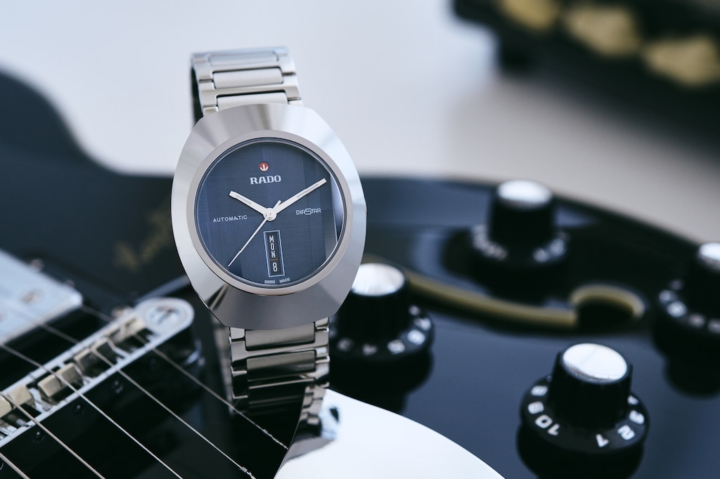 與眾不同的DiaStar鑽星系列創始型腕錶,直徑38毫米,防水深度可達100公尺。這枚美麗的腕錶以平行條紋切面的藍寶石水晶玻璃錶鏡為底,採用超亮碳化鈦金屬陶瓷紋飾,搭配拋光處理過的角度和細節點綴,鑲嵌在互相搭配的單色精鋼錶殼上。腕錶配備藍色拉絲錶盤,可雙向旋轉、具有銠色Super-LumiNova®夜光塗層指針,以及與錶盤顏色一致的日期顯示。腕錶內部的Rado瑞士雷達表R764型自動機械機芯,搭載防磁Nivachron™游絲,可提供80小時動力儲存。配有經拋光和拉絲處理的精鋼錶鏈。