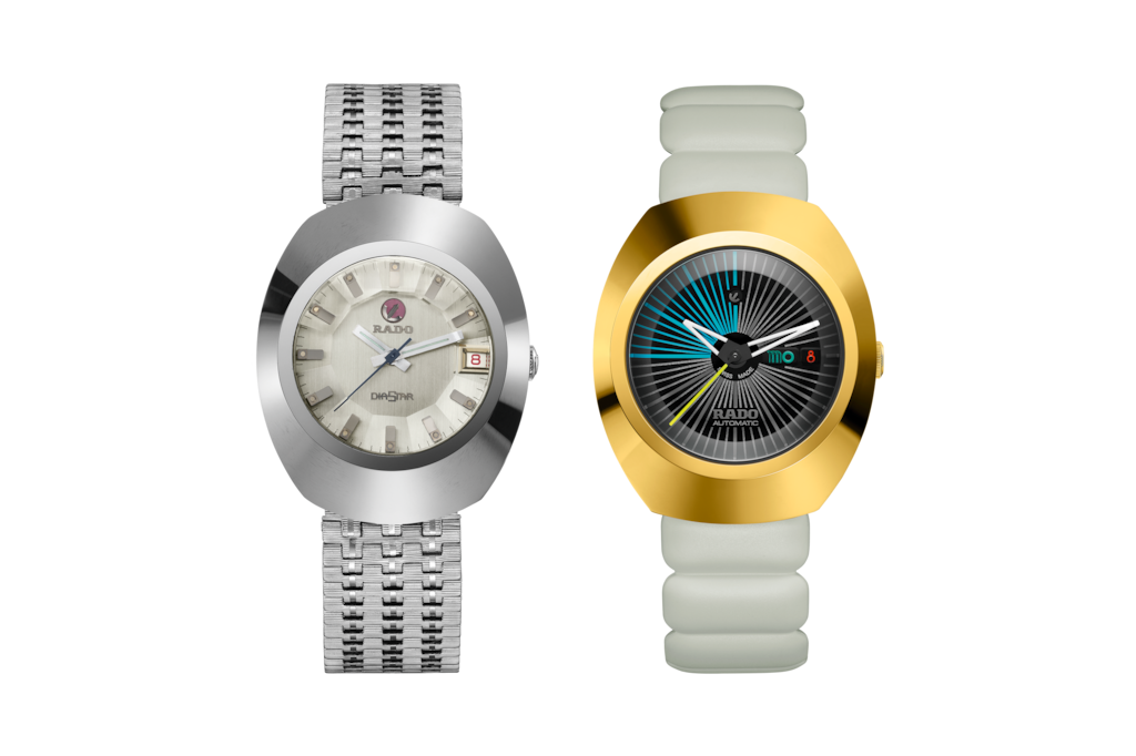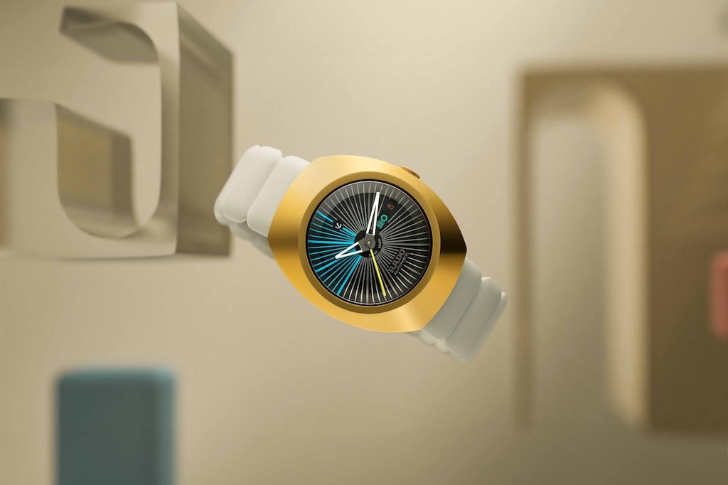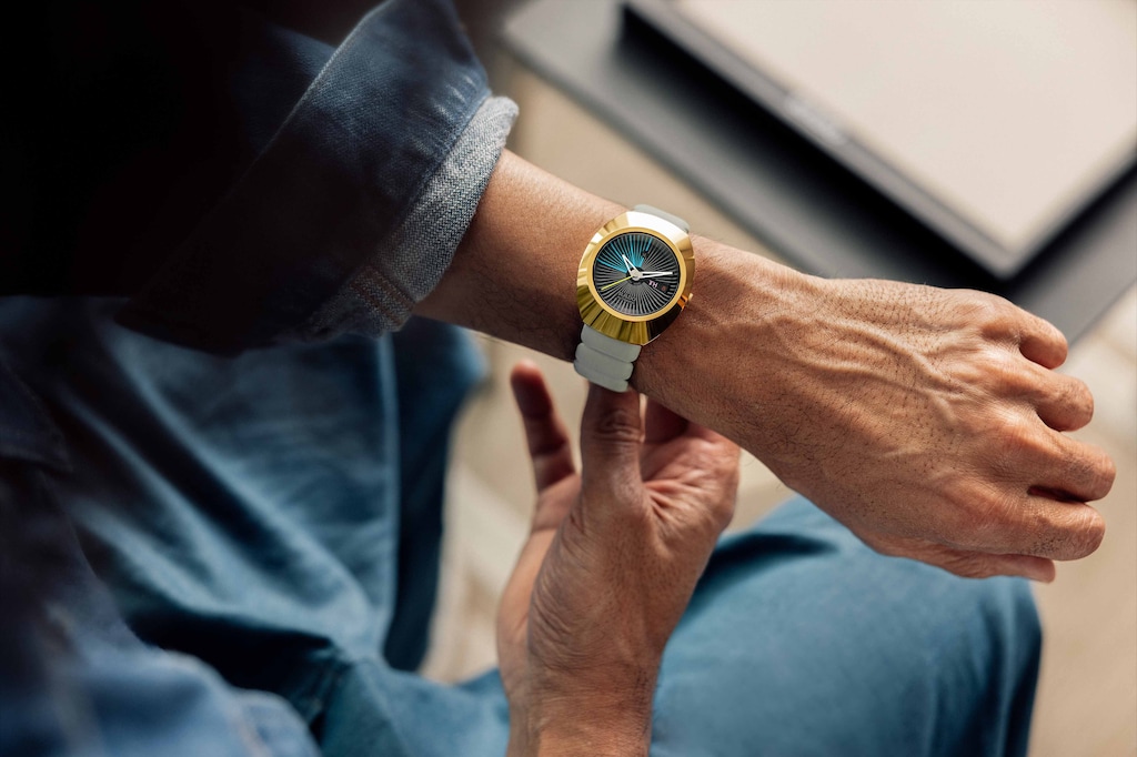Rado瑞士雷達表DiaStar鑽星系列創始型腕錶以其瑞士製錶工藝與前瞻設計理念而聞名,並在全球知名工業設計師Tej Chauhan的巧思重塑下,展現大膽新貌。 38毫米錶殼,鑲嵌拋光黃金色PVD塗層Ceramos™金屬陶瓷錶圈,與拋光黃金色PVD塗層精鋼中層錶殼和諧相融,防水性能高達10巴(100米)。 啞光黑色內凹錶盤充分體現Rado瑞士雷達表對技術細節的精湛掌控,搭配銀藍相間的分鐘刻度,並輔以每五分鐘一枚的浮雕立體時標。在12點與6點鐘位置,經噴砂處理的黑金色Rado瑞士雷達表經典可擺動錨型標誌與品牌Logo驕傲地矗立其間。3點鐘位置設有日期與星期顯示窗,採用Tej Chauhan專屬字體,並運用包括霓虹塗料在內的鮮豔色彩搭配。 拋光黑金色時、分針覆有白色Super-LumiNova®夜光塗層,搭配一抹霓黃色點綴的秒針,無論白晝或黑夜皆能保證絕佳辨識度。此腕錶配備放射形切割藍寶石水晶鏡面,內層加強抗反光塗層,確保呈現無瑕透明視野。 R764自動上鏈機芯為腕錶提供強勁動力,機芯經五個方位精密調節,搭載Nivachron™抗磁游絲,提供高精準度和80小時動力儲存。錶款整體搭配極具突破性的灰色枕形橡膠錶帶,由深灰色PVD鍍層精鋼可調折疊式錶扣固定,錶扣上覆有黃金色蓋板,按鈕上雕刻Rado x TC字樣,盡顯奢華與細節之美。