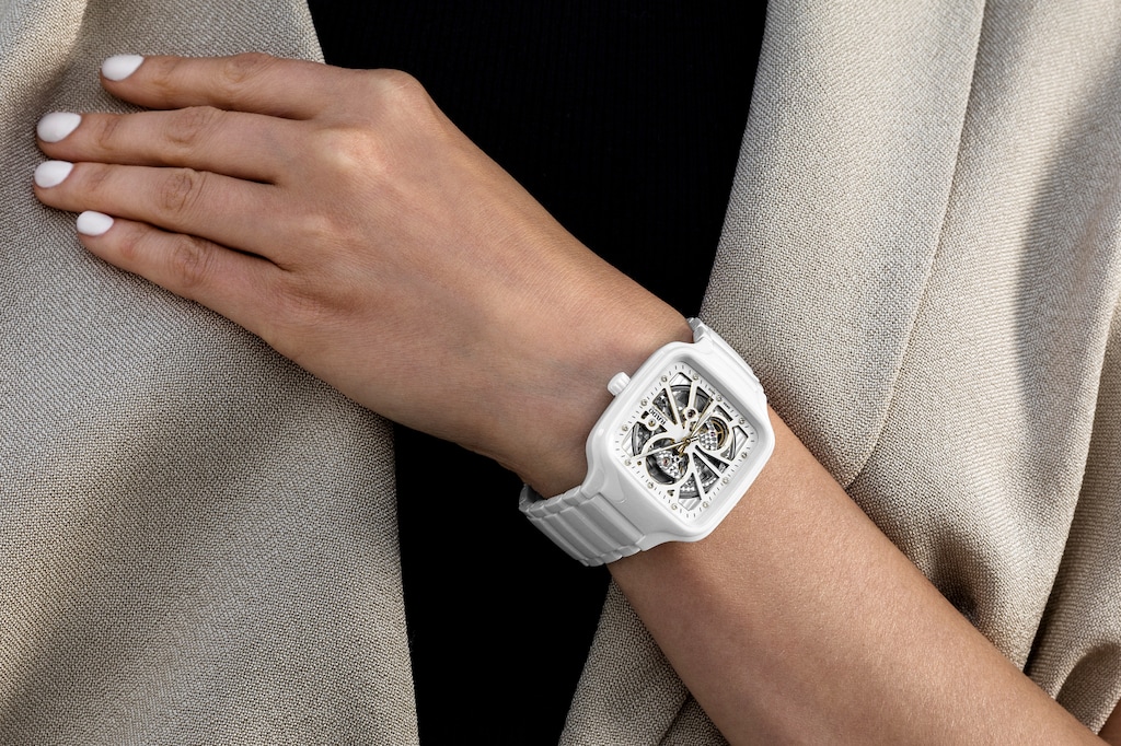 Rado瑞士雷達表以打造方形高科技陶瓷腕錶而著稱。True真系列方形腕錶全新詮釋了品牌的標誌性腕錶形狀。作為我們首款採用注塑成型整體式構造高科技陶瓷方形錶殼的錶款,True真系列方形腕錶輕盈、耐磨損且提供舒適配戴感。Rado瑞士雷達表True真系列方形開芯自動機械腕錶擁有獨特的設計風格,引領著未來塑形風潮。